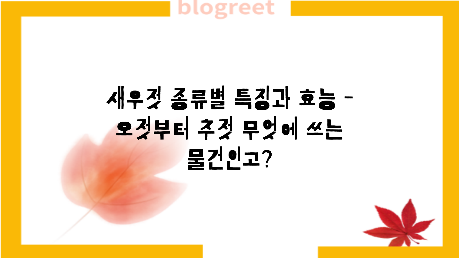 - 겉절이: 깔끔한 맛을 내는 오젓이나 자하젓이 적합합니다.