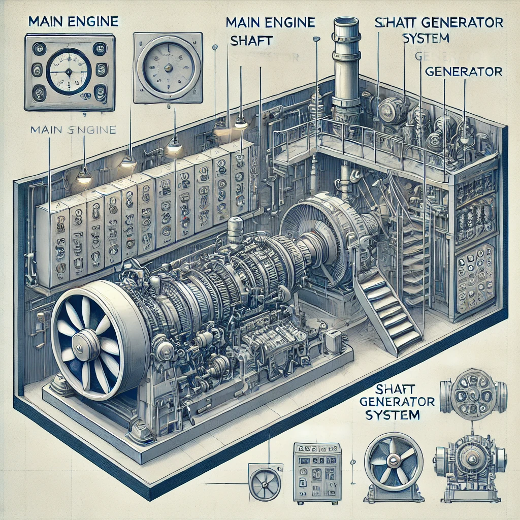 The shaft generator system connects the ship's main propulsion shaft to the generator, converting mechanical energy into electrical energy. Key components include:</p>
