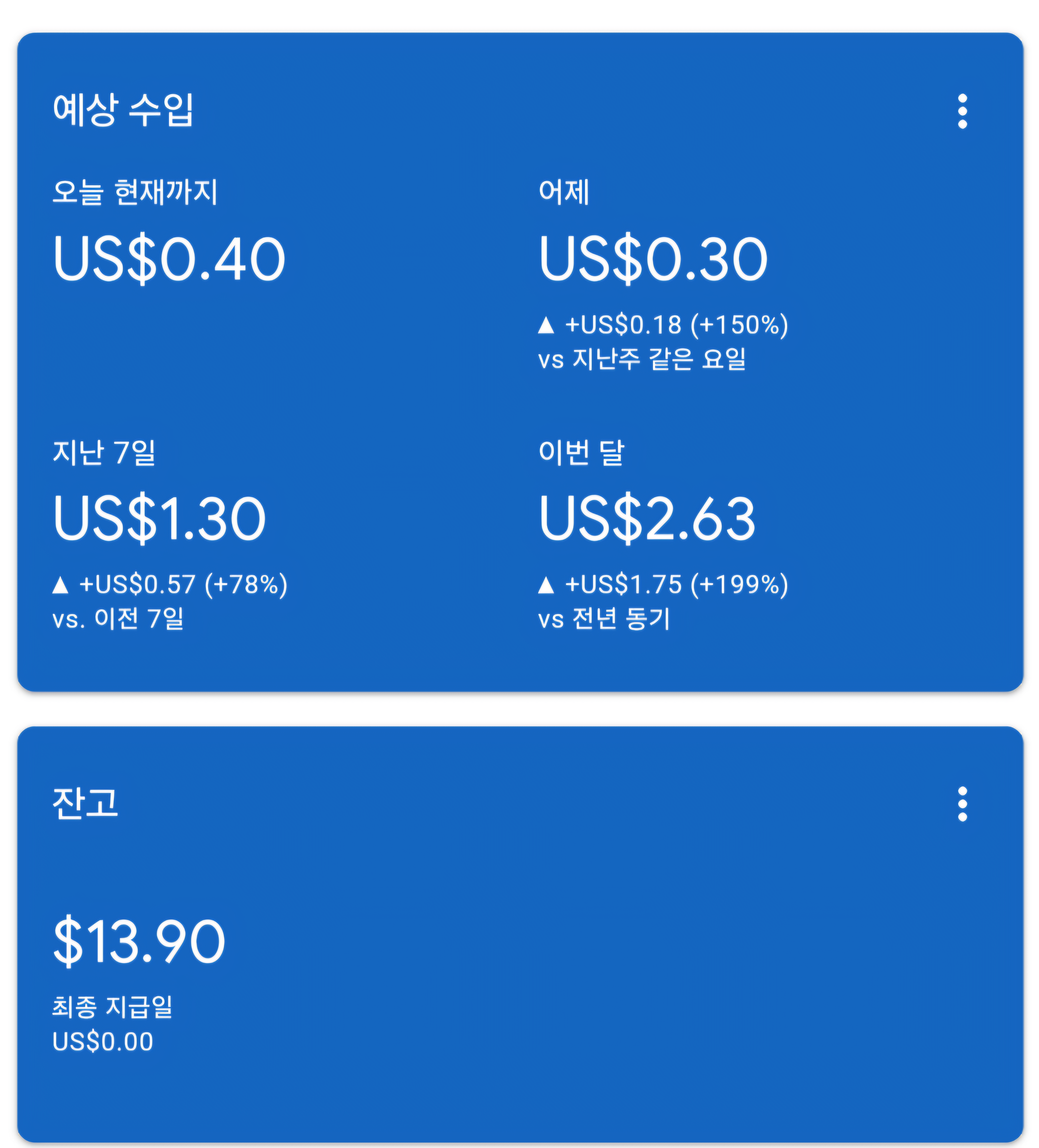 1개월 전, 제 애드센스 하루 수익은 0.01달러였습니다. 매우 작은 시작이었지만, 저는 매일 꾸준히 포스팅하는 것만으로도 큰 변화를 만들 수 있을 것이라 믿었습니다. 그리고 한 달 뒤, 하루 수익이 0.4달러로 무려 40배 성장을 이뤘습니다.