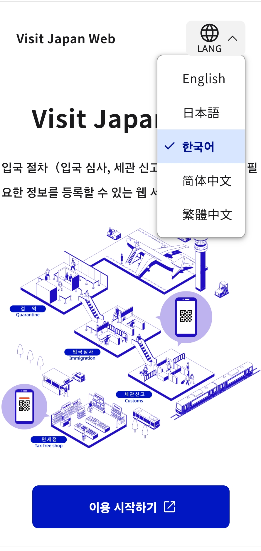 'Visit Japan Web'은 일본 입국을 위한 필수 웹사이트입니다. 사용법은 다음과 같습니다: