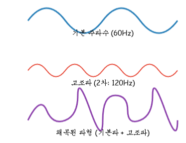 고조파는 전력 시스템에서 기본 주파수(한국의 경우 60Hz)의 정수배 주파수를 갖는 전압 또는 전류 성분입니다. 예를 들어, 60Hz 시스템에서 2차 고조파는 120Hz, 3차 고조파는 180Hz가 됩니다. 이러한 고조파 성분들이 기본 주파수 성분과 합쳐지면 전압과 전류 파형이 왜곡되어 다양한 문제를 일으킵니다.