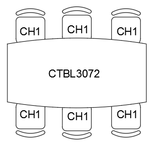 5. 회의용 테이블에서 더 긴 양쪽에 회의용 의자 블록 여러 개를 삽입합니다.