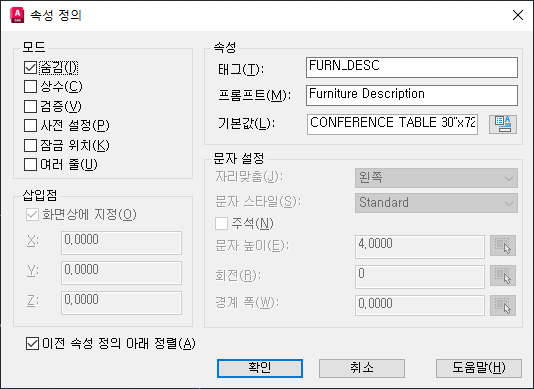 AUTOCAD -ATTDEF(명령)