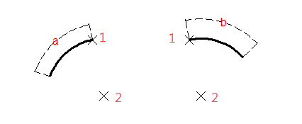 시작점(1), 종료점(2) 그리고 각도를 지정하여 호를 그립니다.각도가 양수인 경우 호는 반시계 방향으로 그려지며, 음수인 경우 시계 방향으로 그려집니다.