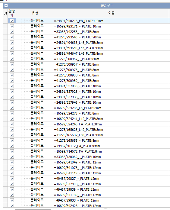 - 왼쪽의 구조 트리(Structure Tree)에서 원하는 유형(예: 벽, 창문 등)을 선택합니다.