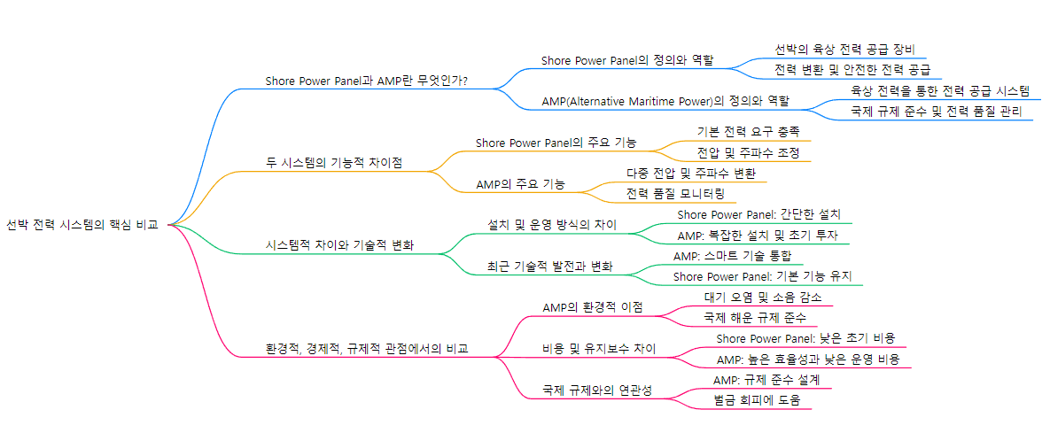 Shore Power Panel과 AMP 장비는 각각의 강점과 약점을 가지고 있으며, 선택은 선박의 크기와 용도, 그리고 운영 환경에 따라 달라집니다. Shore Power Panel은 소형~중형 선박이나 단순한 전력 요구를 충족시키는 데 적합한 반면, AMP 장비는 대형 선박이나 복잡한 전력 요구를 가진 경우에 더 적합합니다. 특히 AMP 시스템은 환경 보호와 비용 절감 측면에서 더 큰 이점을 제공하며, 국제해사기구(IMO)의 환경 규제가 강화됨에 따라 점점 더 많은 선박에서 채택되고 있습니다.