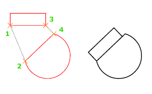 첫 번째 세트의 근원 및 대상점은 정렬 기준점을 정의합니다(1, 2). 두 번째 세트의 점들은 회전 각도를 정의합니다(3, 4).